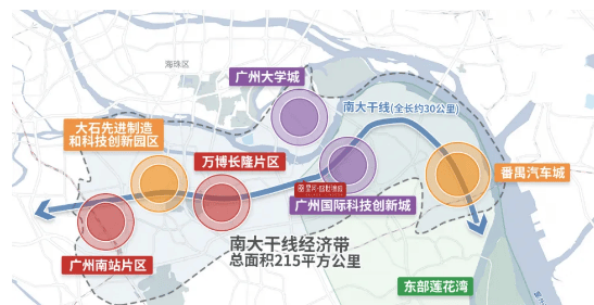 星河·盛世锦城地理位置得天独厚,坐落于广州番禺万博·余荫山房北侧·板桥地铁站旁,地处南大干线经济带上的番禺黄金财智走廊,具备强大的区域发展潜力。这一走廊不仅是连接珠三角东西岸的重要发展走廊,更串联了番禺多个关键经济板块,如广州南站、长隆万博、国际创新城以及汽车城板块,为居民带来丰富的就业机会与发展机遇。