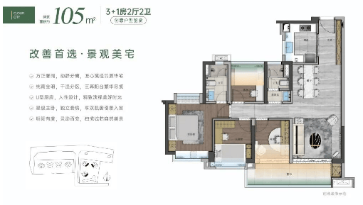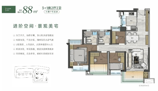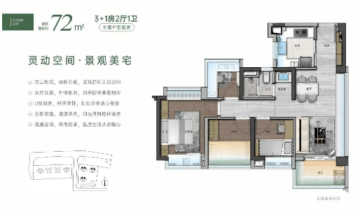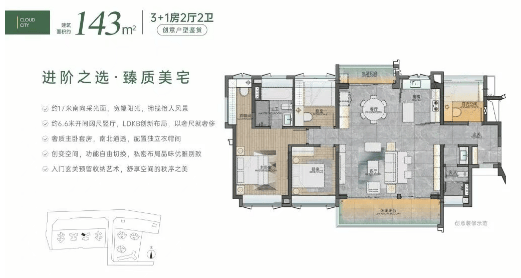 云城上品提供了从72㎡到143㎡不等的多种户型选择,即使是73㎡的小户型也能设计成四房,极大地提高了空间利用率。