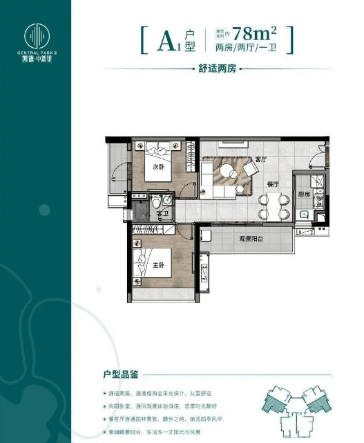 A4:项目在售76㎡-140㎡的二至四房户型,户型丰富多样。76㎡-95㎡户型适合刚需购房者,105㎡-140㎡户型适合改善型购房者,能充分满足不同家庭结构的居住需求。