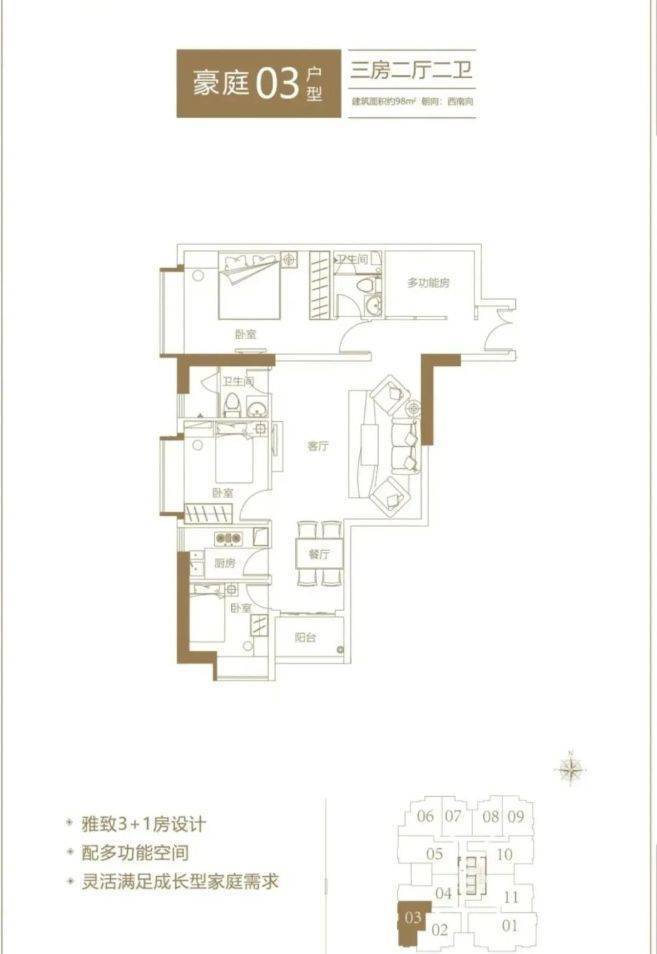 肆:令人惊艳的户型户型设计多样,涵盖 85 - 192 平多种面积段,满足不同家庭结构的需求。从温馨的两居室到宽敞的四居室,无论是新婚夫妇、三口之家,还是三代同堂的大家庭,都能找到合适的户型。较高的使用率达 82%,让每一寸空间都物尽其用,提升居住舒适度。虽梯户比为 4 梯 11 户,但合理的户型布局与设计,一定程度上弥补了可能带来的不便。各户型方正实用,部分户型还可享受周边美丽景观,为业主营造温馨舒适的居住空间。
