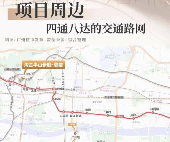 贰:便捷的交通带来的体验交通出行极为便捷,距离地铁 5 号线淘金站仅约 600 米,搭乘地铁 5 站即可直达珠江新城,快速畅达城市核心区域。周边 12 号线、13 号线 2 期在建,未来交通网络将更加完善。自驾方面,背靠环市路、恒福路、淘金路、内环路等主城动脉,交通干线环绕,出行选择多样。项目东侧设有淘金北站公交站,公交线路 10、245、247、546 等多条线路途经,公共交通出行也十分便利,大大提升了居民日常通勤、商务出行与休闲娱乐的效率。