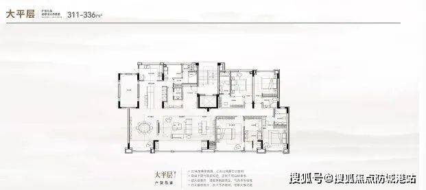 311㎡六室叠院:上下双层,六室三厅六卫,私家电梯入户。下叠带约100㎡私家花园,上叠享星空露台,总价933-950万/套。