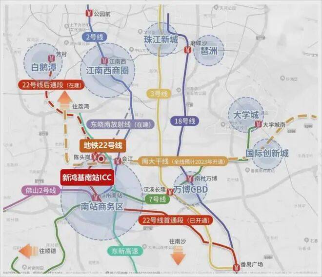 交通枢纽:项目紧邻广州南站,拥有12条轨道交通线路,包括4条高铁线、4条城际铁路和4条地铁线,形成了一个立体化的交通网络,方便居民快速到达城市的各个角落以及国内其他主要城市。