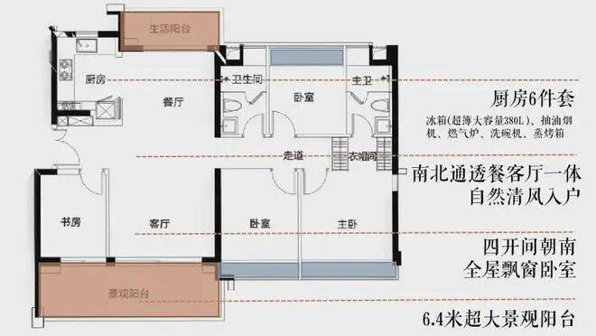 每户均采用大面积玻璃窗设计,保证了充足的采光和开阔的视野。此外,建筑标准层高达3.15米,赠送全屋日立中央空调和双层中空LOW-E玻璃窗,提升了居住舒适度。