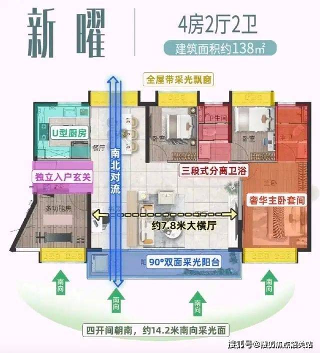 2. 纯南改善户型:123-138㎡四房,采光通风极致化