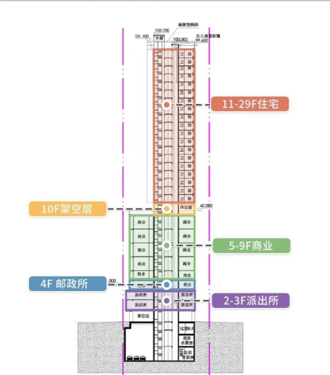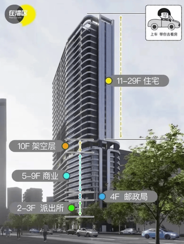 小区规划独具特色,1 楼设置住宅 7 米挑高独立入户大堂、公寓 / 派出所 / 邮政局入户大堂,还有三点半啡吧 / 四点半学堂 / 六点半茶居等配套,方便业主生活。2 - 5 楼为派出所、邮政局。6 - 9 楼是 5 米层高 loft 公寓。10 楼设有全龄段空中泛会所和无边际泳池,为业主提供休闲娱乐空间。11 - 29 楼是 74 席住宅。装修标准极高,全屋定制奢装,配备博世等高端德系厨电卫浴、地暖,双层中空玻璃,7 米挑高大堂全石材装修,细节对标顶豪,为业主营造高品质居住环境。