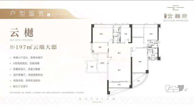 197㎡南向5房2厅3卫:四面采光,东单边户,三套房双阳台舒适大平层。