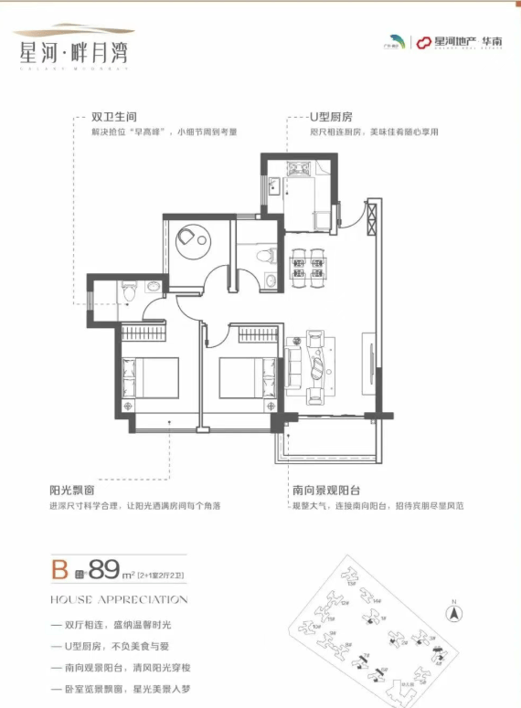 星河·畔月湾总建筑面积约63.45万㎡,规划21栋高层住宅,分两期开发。目前一期(南地块)已进入现房及尾货阶段,二期即将推售,整体规划成熟有序。