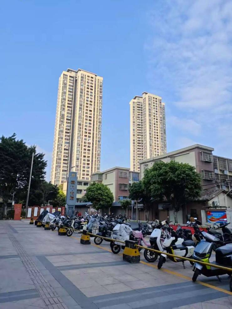 如果大家不熟悉这对双子星,我给大家介绍一下。去看盘,大概率你是从中山大道转进车陂北街,电动车很多,两边都是低矮老房子,一眼就看到富力天禧鹤立鸡群既视感。
