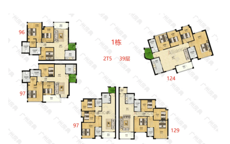 再看邻居富力万科云启,户型面积明显保守很多,96-97平方的三房两卫,125平的四房,放在今天看并不过时,如果按照今天开发商的算法,使用率亲测有9成以上。从这个角度看,云启跟天禧这对双子星户型是互补的,也不知道是不是富力的意思。