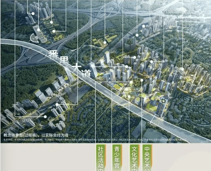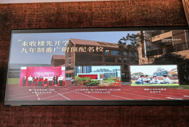 核心教育亮点:项目规划 12 所学校,包含 6 所幼儿园、3 所小学、2 所初中、1 所高中,覆盖 12 年全龄教育,不用因为孩子升学换房;进度最快的 54 班小学 + 36 班初中,已官宣引入番广实验教育集团办学,由广大附中番禺实验学校具体管理,和越秀大学城和樾府配建的学校一模一样,教学质量有保障。