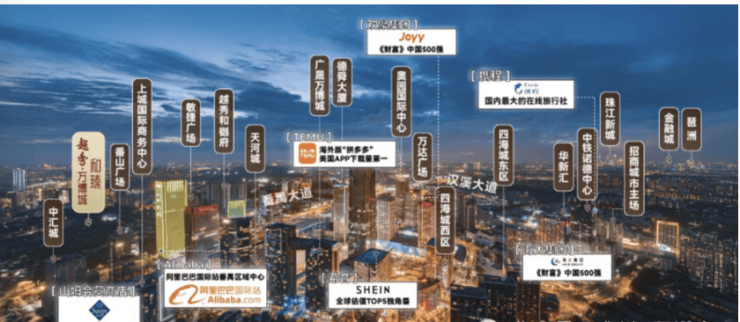项目 → 万博 CBD 核心(天河城、四海城):直线距离约 600 米,自驾约 3 分钟,步行约 8 分钟。