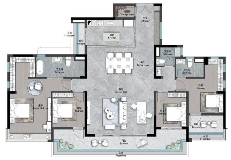 142㎡四房两厅三卫:双主卧套房+中西双厨,总价约863万元/套(天河区同面积段豪宅均价950万元/套,倒挂10%);
