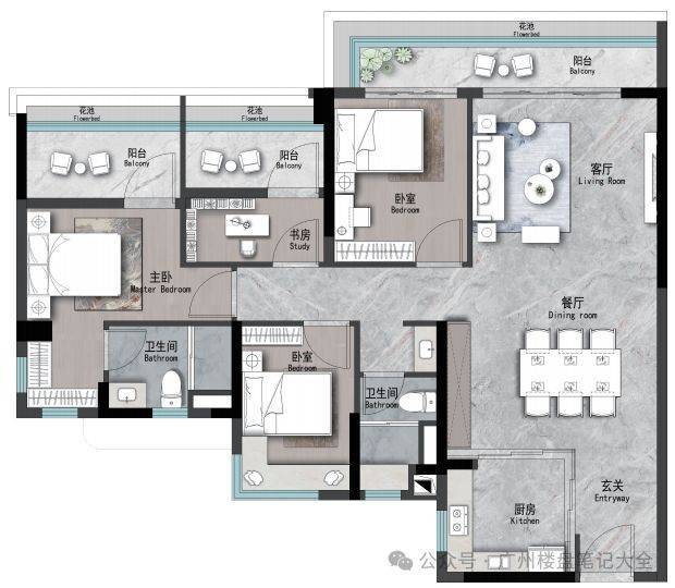 社区低密度住宅形态在天河区属于较稀缺资源。高密度城市中心往往以高层公寓为主,而该项目通过小高层建筑布局控制人口密度,从而形成更强的社区归属感。低密度并非简单的建筑高度控制,而是涉及到公共空间比例、景观系统以及社区活动空间规划。高端住宅社区通常会强化景观轴线设计,使居住者在日常生活中获得更强的视觉舒适度。