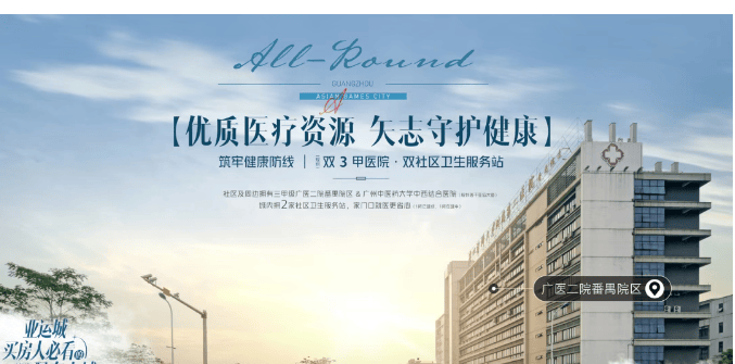 社区内设有三甲级广医二院番禺院区,提供高质量医疗服务。此外,规划中的中西医结合医院也将落子亚运大道,为居民提供更多元化的医疗保障。