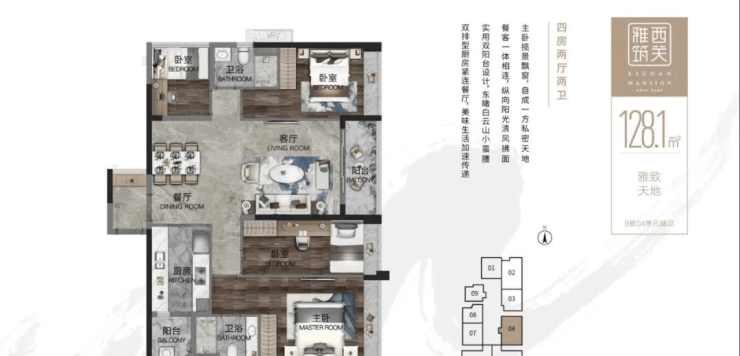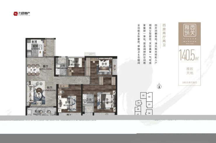 B栋【观玥组团】05\06单位140㎡四房两厅2卫