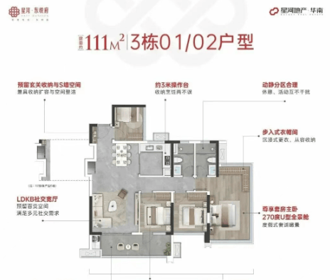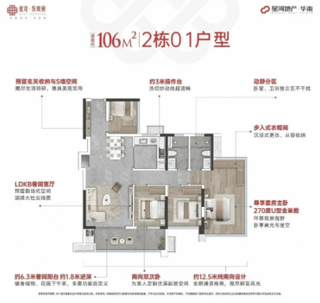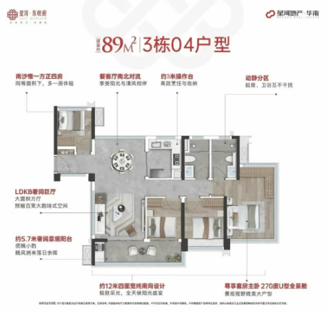 星河·东悦府提供了从89㎡至138㎡的不同户型,满足各类家庭需求。其中,89㎡户型设计为南北对流,实现四房两厅两卫的空间布局,空间利用率极高。而138㎡户型则提供了双主套4+1房的设计,适合追求更大居住空间的家庭。
