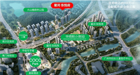 项目附近不仅有大型购物中心如星河COCO Park,还有多所三甲医院,如广州市妇女儿童医疗中心南沙院区。此外,946万㎡的大山乸森林公园更是为居民提供了一个天然的绿色屏障。