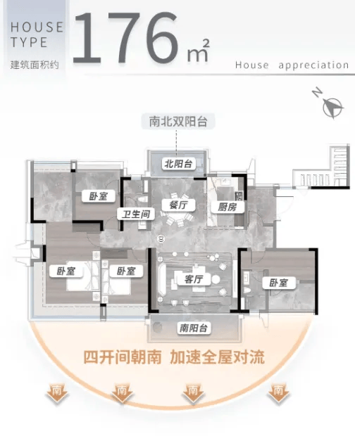 176㎡四房两厅两卫:全生命周期户型,适配多孩家庭