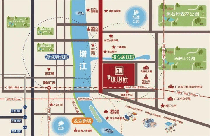 优越区位构筑多维交通网络,实现城央生活与城际通勤的无缝衔接。项目坐落于增城大道南,紧邻荔城街道,经雁塔桥可直达社区核心,快速衔接城区各项配套。对外依托广惠高速、广河高速等快速路网,便捷通达广州、东莞等城市,约1小时畅达珠三角核心城市圈,无论是日常通勤还是城际出行,都能高效切换,平衡工作与生活节奏。