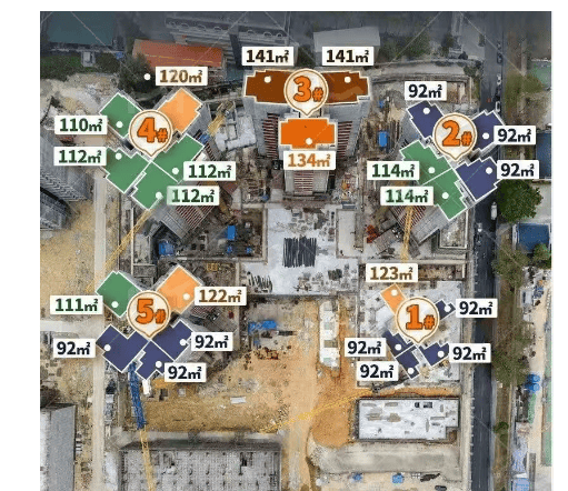 新世界·四季山水位于黄埔黄陂板块核心,由深圳新世界集团开发,是天河智慧城与黄埔科学城“双科创引擎”交汇处的稀缺住宅项目。项目总占地约3万㎡,规划5栋29-32层住宅及1栋公寓,住宅总户数673户,容积率3.28,车位配比高达1:1.59,充分满足家庭用车需求。主力产品为建面约92-141㎡三至五房,全南向布局,主打超高使用率,最高可达118%,远超市场平均水平。项目属华侨村旧改复建区,同步配建幼儿园、托儿所及约9600㎡社区商业,整体定位务实而精准,聚焦刚需上车与改善升级两类客群,在黄埔同质化竞争中以“高得房+真地铁”突围。