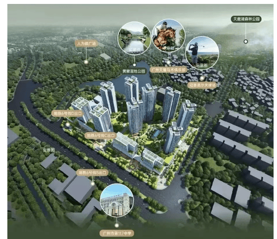 生活配套全面兑现。项目自建近万㎡社区商业(在建),步行600米即达东方汇广场,涵盖超市、影院、餐饮等日常所需;500米内还有已封顶的20万㎡翔龙综合体,未来将形成区域级商业中心。医疗资源尤为突出——10分钟车程内可达黄陂医院,15分钟覆盖中山三院岭南医院、广州医科大学附属妇女儿童医院(已封顶)、天河区第二人民医院(在建)等三家三甲医院,健康保障体系完善。更难得的是,项目被五大生态公园环抱:火炉山、帽峰山、天鹿湖、梅花岭及黄陂湿地公园均在5公里范围内,周末露营、晨跑、骑行触手可及,甚至毗邻天麓马术俱乐部与冠景高尔夫球场,实现“城芯繁华”与“山居静谧”的双重享受。
