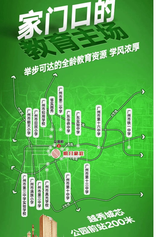 项目最大优势在于其无与伦比的交通区位——距离地铁1号线与2号线交汇站公园前站A出口仅约300米,步行5分钟即达。3公里范围内覆盖1、2、5、6、8号线共5条运营地铁线路,可快速通达珠江新城、天河、海珠、荔湾等核心区域。周边路网发达,紧邻解放路、中山路、大德路等主干道,自驾10分钟内接入内环路与东风路,高效连接城市各极。对于依赖公共交通或高频通勤的租客而言,明月豪庭具备极强吸引力,为未来出租提供坚实基础。