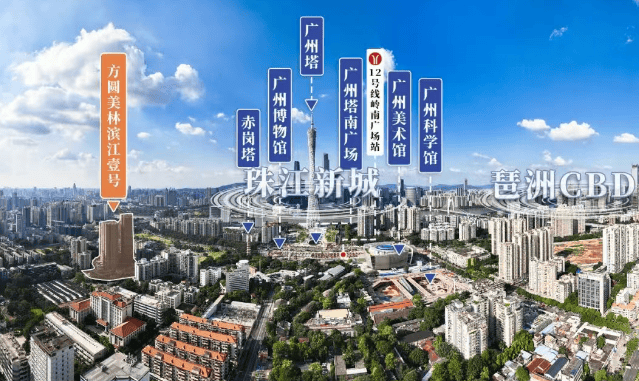 方圆·美林·滨江壹号位于海珠区新市头村旧址,是方圆集团与美林基业联合操刀的旧改项目。作为广州塔-琶洲CBD连片开发政策下的重要节点,该地块承载着连接珠江新城与琶洲数字经济示范区的双重功能。根据广州市相关规划文件显示,这一区域集聚了超过144栋甲级以上写字楼,贡献了全市相当比例的经济总量。项目所处的地理位置,使其天然具备了商务与生活交融的属性。北侧距离珠江岸线约800米,南向紧邻广州塔商圈,这种“一江两岸”的区位特征,构成了项目最基础的价值底色。在城市建设不断向南拓展的背景下,这里已成为华南地区总部经济、金融及科技产业高度集聚的区域之一。
