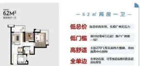 62㎡三房户型: 精巧实用,适合刚需家庭。