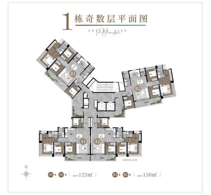 主要为125~169㎡四房产品,使用率超130%,全南向布局,阔景阳台及空中双花园设计兼顾空间利用与景观享受,满足改善家庭对居住舒适性及私密性的需求。