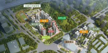 丰富的教育资源:自带两所幼儿园和一所54班九年一贯制学校,且引入广州市玉岩中学,教育资源非常丰富。