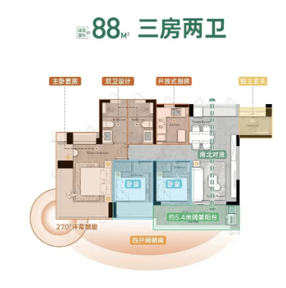 项目首开一期规划4栋楼,层高28-33层,共569户。在售产品涵盖88至108平方米的三至四房户型,使用率接近100%,相比同板块其他项目具有明显优势。这些户型设计紧凑合理,既节省了购房预算,又提升了居住舒适度。