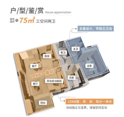 《中海江泰里》提供多种户型选择,从75平方米到105平方米不等,满足不同家庭的需求。特别值得一提的是75平方米的三房两卫户型,空间利用率高达95%,非常适合刚需家庭。这样的设计既保证了居住的舒适度,又兼顾了空间的有效利用,是小户型中的佼佼者。