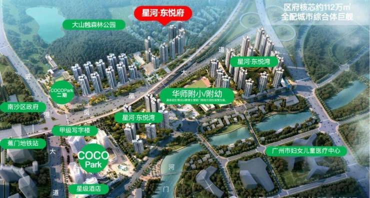 项目内部规划星河COCO Park,引入横店影城、西西弗书店、POWAVE健身等60+南沙首店,满足日常购物、娱乐需求。周边3公里内覆盖万达广场、悠方天地、南沙环宇城等14个大型商场,商业密度冠绝南沙。