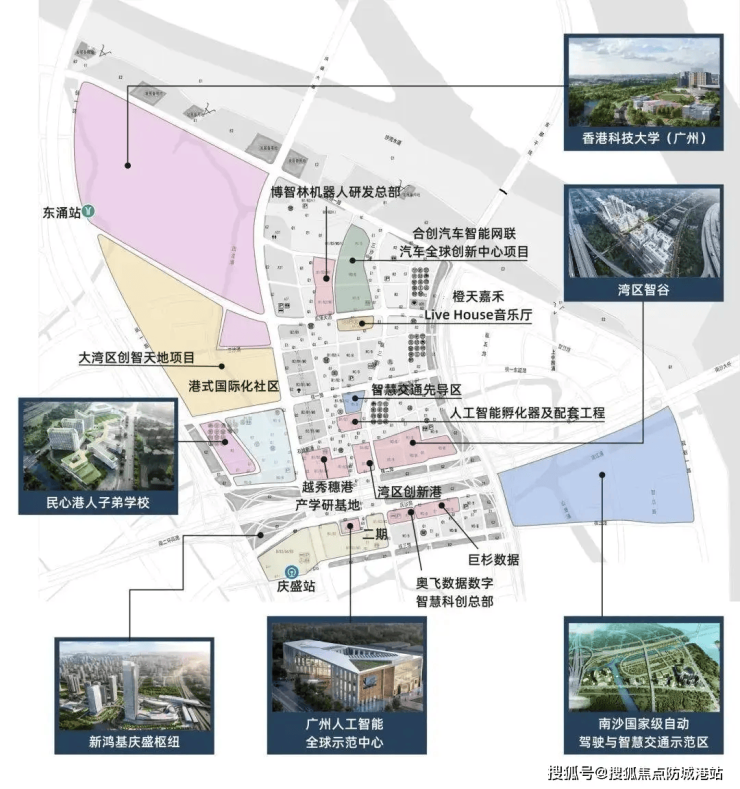 路网交通:项目周边“3横3纵”主干道(南沙港快速、广澳高速、莞佛高速+市南大道、黄阁南路、庆盛大道),实测车程: