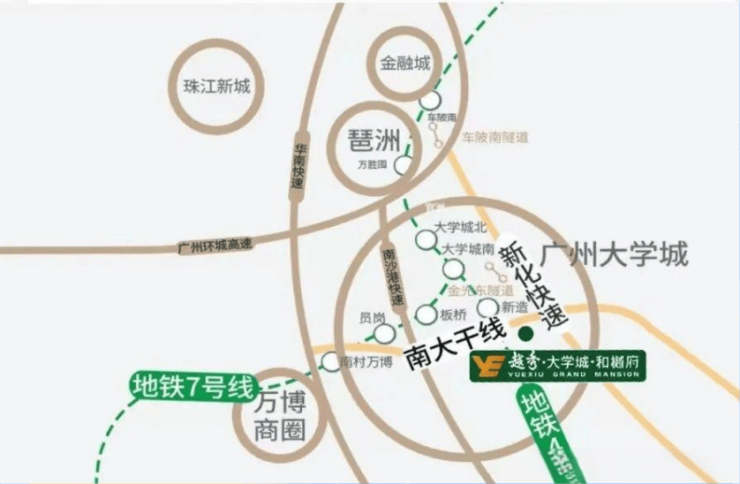 在现代都市生活中,时间是最宝贵的成本。越秀大学和樾府在交通配套上的表现,堪称“教科书级别”。项目紧邻地铁4号线新造站,步行距离仅900多米。对于习惯了地铁出行的广州市民来说,这个距离恰到好处,既避免了紧贴地铁站的嘈杂,又享受了举步即达的便捷。