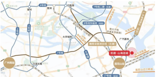 未来交通还将进一步升级,周边规划的8号线东延段莲花站距离项目3.9公里,该线路将连接至万胜围,预计2027年试运营。地铁开通后,将大幅提升项目的公共交通便利性,进一步缩短与广州各区域的时空距离,为业主出行带来更多选择。