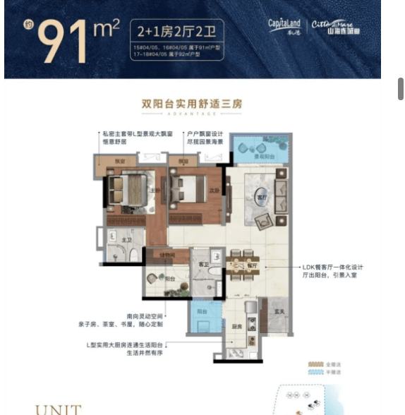 凯德山海连城二期在售户型丰富多样,涵盖多个面积段,能满足不同家庭的居住需求,无论是刚需家庭还是改善型家庭,都能找到合适的房源。项目二期主要有5个面积段的户型,分别是85平三房两厅一卫、91/106平三房两厅两卫、130平A户型五房两厅两卫、130平B和135平户型四房两厅两卫,此外还有203-206-211平的叠墅户型。
