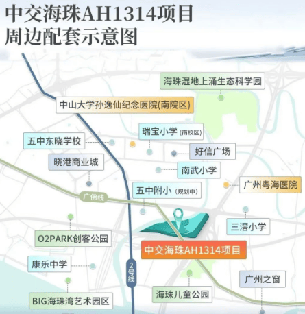 中交天翠地理位置优越,紧邻广州地铁2号线与广佛线交汇的南洲站,直线距离仅约400米,实现了真正的“地铁上盖”便捷出行。此外,项目周边还有广州大道和广州绕城高速,形成了高效的立体交通网络,尽管靠近主干道可能会带来一定的噪音问题,但开发商承诺会采取有效措施进行降噪处理。