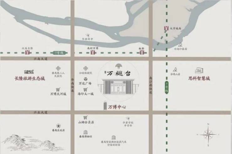 五矿万樾台位于万博CBD板块,西接繁华的商业区,北靠近9000平方米的山体资源,南面则是公共绿地。项目周边交通便利,南沙港快速路、兴南大道等主要交通要道环绕,半小时内可达天河生活圈。