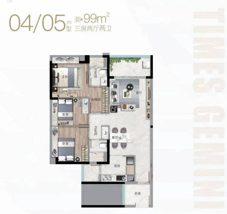 时代珑星共两栋楼。G1 栋蝶形设计,两梯六户,户型为 99 - 106 平三房;G2 栋外观独特,推出 62 - 79㎡精奢小户住宅。