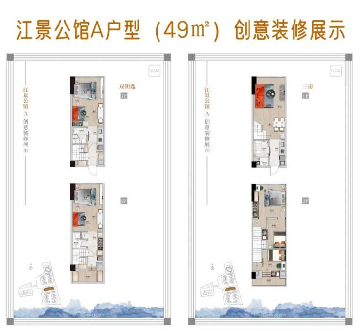 公寓产品面积段为38-50㎡,层高4.5米,带阳台。