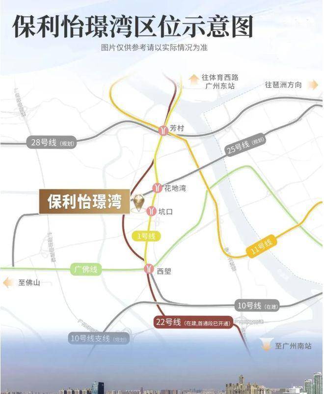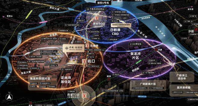 交通条件十分优越,1 号线坑口站步行可达,周边公交站点密集。距离黄金地铁 1 号线约 600 米,2 站即可到达芳村 TOD 并换乘 11 号线环线(已运行),1 站至西塱 TOD 可换乘广佛线(已运行)和 10 号线(预计 2025 年 6 月开通),畅达珠江新城等地,交通网络覆盖全城。从 1 号线坑口站 D 口出站,沿东漖南路步行至项目,大约仅需 8 分钟。自驾方面,小区附近设有多个出入口,如东漖北路出入口、东漖南路出入口等,可快速连接环城高速、广花高速等主要交通干道,为居民出行提供了极大的便利。项目所处的白鹅潭核心居住区,北连白鹅潭 CBD,东接聚龙湾,尽享两端发展红利。
