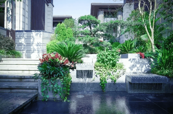 五矿万樾台以“皇家中轴、五进礼制”为设计蓝本,融合当代岭南园林精髓,打造“一墅两院三台十六景”的空间序列。项目依山就势,采用多台地设计,每栋别墅均拥有首层庭院与阳光层庭院,形成上下双院格局。首层花园面积达145–270㎡,部分户型更可打造私家泳池;下沉式庭院则直面山体景观,四季景致尽收眼底。