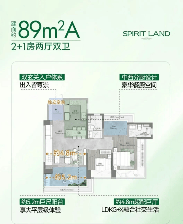 建面约89㎡ 三房两厅两卫:海珠使用率最高的产品,约115%,内外双玄关 LDKG+X一体化 约4.8m越级巨厅。