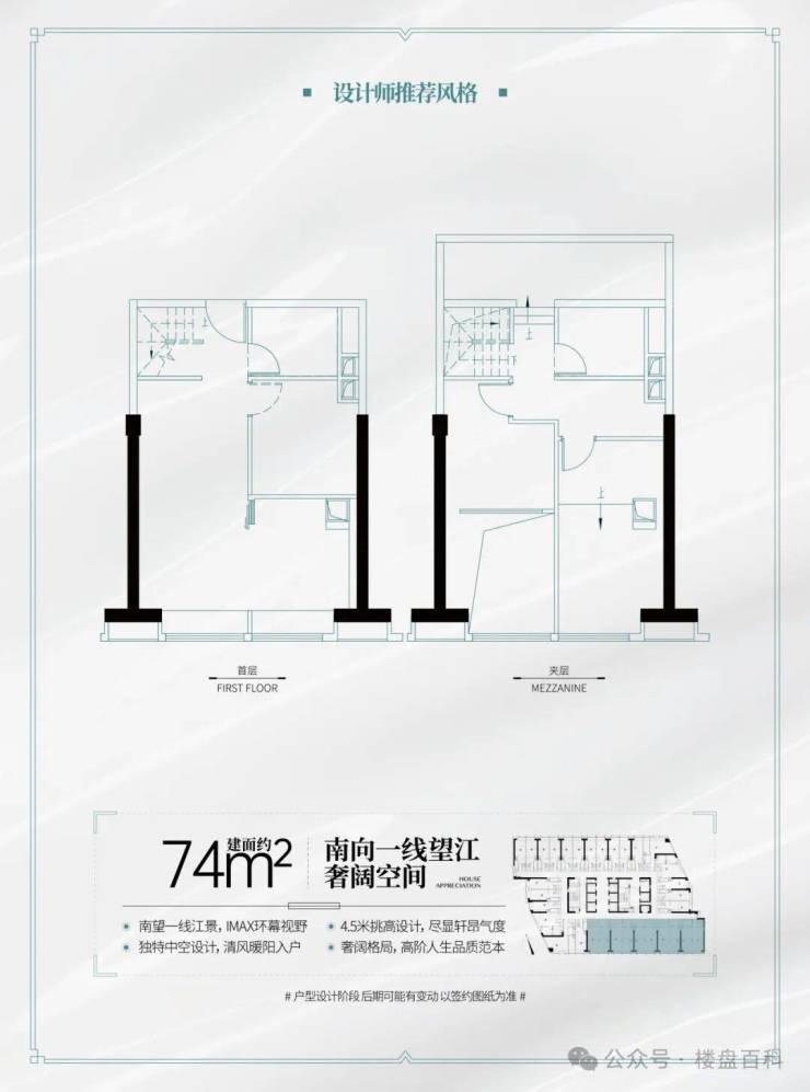 主力户型:建面 31-36㎡单间、54㎡两房、67㎡三房、74㎡南向望江 LOFT