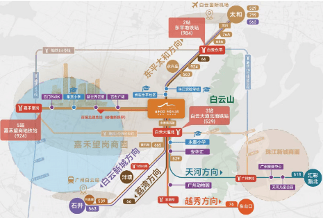 地铁站:距离地铁14号线白云东平站约1.7公里;在建的地铁18号线北延段步行约25分钟,骑车约8分钟。