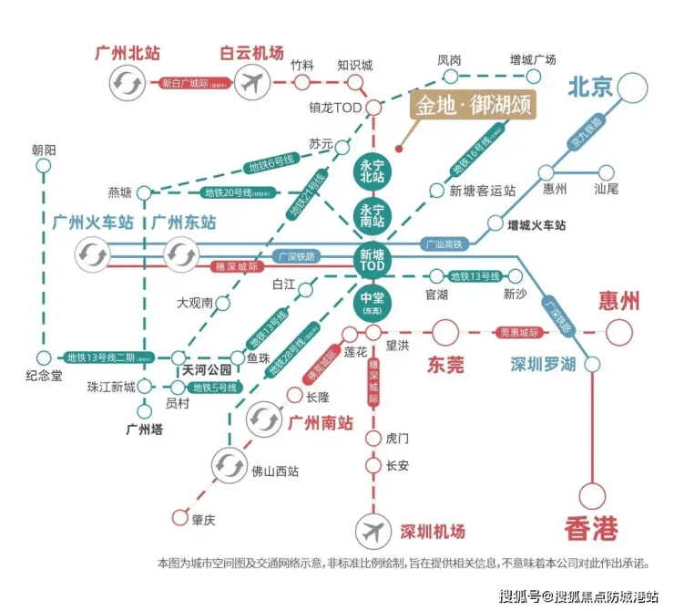 路网交通: 项目周边“三横三纵”主干道(华南快速、广园快速、济广高速;荔新大道、新新公路、香山大道)形成立体路网,驾车约25分钟直达珠江新城,约20分钟抵达金融城,通达性碾压依赖单一交通的项目。