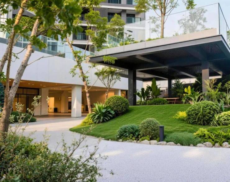 大良滨江壹号二期规划打造总面积约3万㎡的社区园林,以200米双景观中轴串联六大主题休闲场域。整个社区园林摒弃了传统平面布局,依托地块抬高优势打造悬浮式立体景观,在全盘基础抬高3米的前提下,二期住宅架空层再抬高12米,形成约5米高差的山林式景观层次,拾级而上的步道设计让园林更具自然野趣,6米挑高观景平台嵌入园林核心区域,既能俯瞰全园景致,也能满足业主日常休闲、小范围社交的需求。项目还规划了约1500㎡双架空层空间,结合园林主题打造功能分区,避免了阴雨天气休闲场景受限的问题。除核心园林景观外,社区配套覆盖全年龄段需求,配备标准泳池、户外健身区、童梦儿童游乐区、四点半学堂、棋牌室等设施,一楼北侧还设置专属社区活动空间,无论是孩童玩耍、青年健身还是长者休闲,都能找到对应的活动场地,让社区配套真正贴合日常居住需求。
