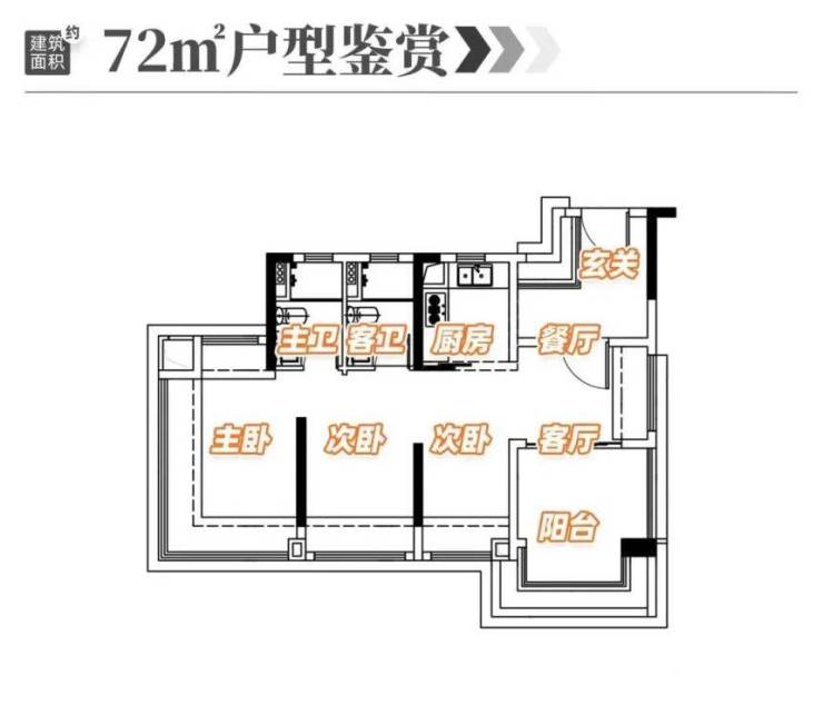 ### 72㎡三房两厅两卫:刚需上车优选,总价298万起